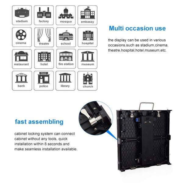 Use of Special heat dissipation structure make excellent heat dissipation, Quiet operation without fans.High refresh/High contrast/High grayscale/ Gorgeous picture showing Ultra-wide viewing angle give you the largest screen viewing area.Die-cast aluminum cabinet design light and easy to transport, good flatness and seamless